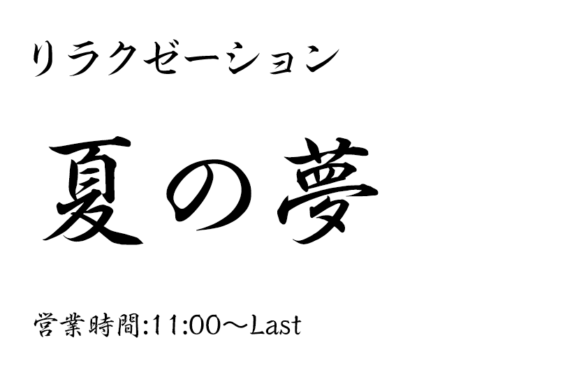 都会の喧騒を忘れさせる隠れ家的な空間のリラクゼーションです。誰にも束縛されない貴方だけのプレミアムな空間で【非日常】であらゆるストレスから開放されて下さい。アロマの香りと癒しの音楽であなたの寂しく疲れた体に合わせた施術を提供いたします。必ずまた来たくなります!心にのこるトリートメントを体験してください。